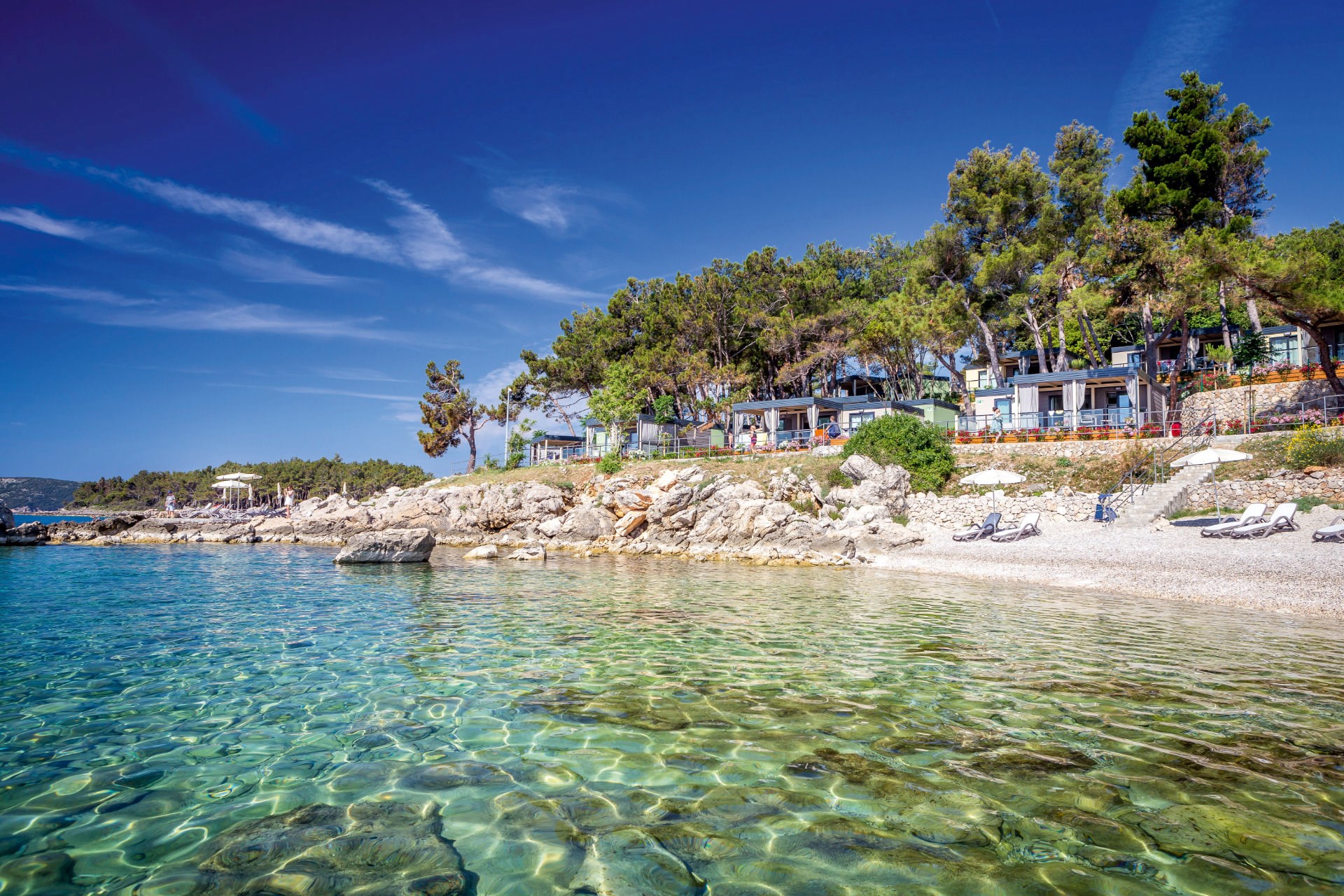 Lassen Sie sich an einem der gepflegten Kiesstrände des Valamar Camping Ježevac direkt am türkisfarbenen Meer von der Natur verzaubern.