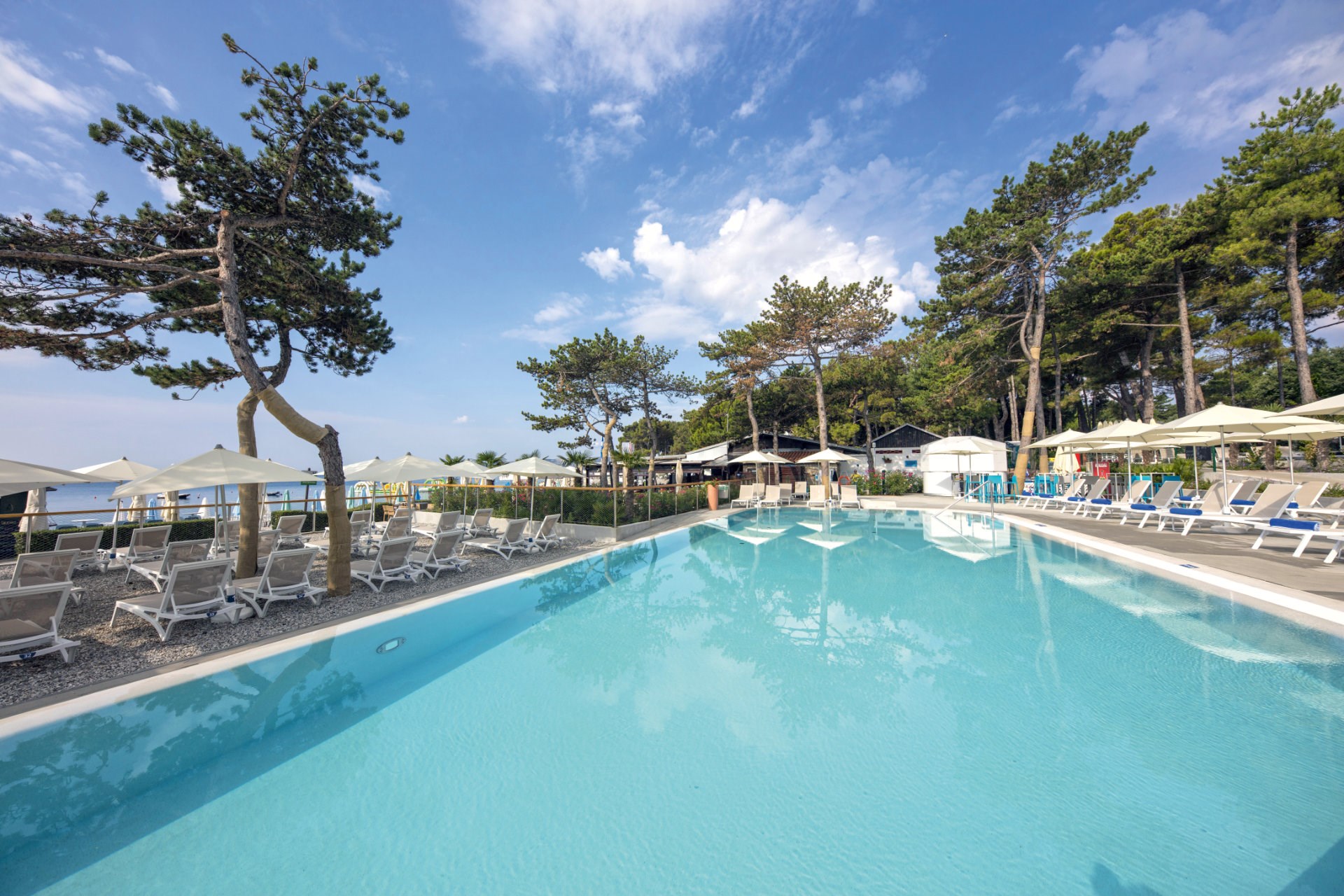 Die 563 Stellplätze sind in fünf verschiedene Unterkunftsarten unterteilt und befinden sich direkt am Meer oder im Schatten der wunderschönen Kiefern. Wenn Sie sich für Stellplätze für Luxury Mare entscheiden, wohnen Sie direkt am Meer und haben Zugang zu Strom und Wasser, einer privaten Grillecke und WLAN. Auf der anderen Seite gibt es Standard-Stellplätze mit Stromanschluss und die umliegenden Kiefern spenden bei Bedarf immer Schatten.