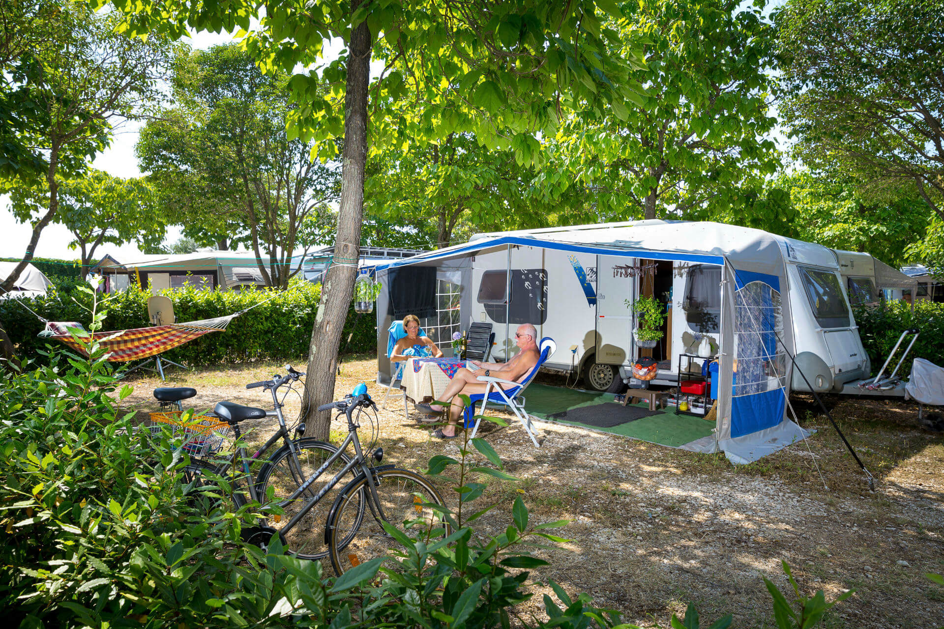 Moving southern from camping Kanegra in Umag, the charming village of Tar has Camping Solaris, a naturist resort with multiple accommodation options. As one of the best campsites for naturists in Croatia, it offers more than 500 camping and caravan pitches, all close to the beach. All pitches, no matter their type, guarantee privacy so you can enjoy your holiday carefreely.