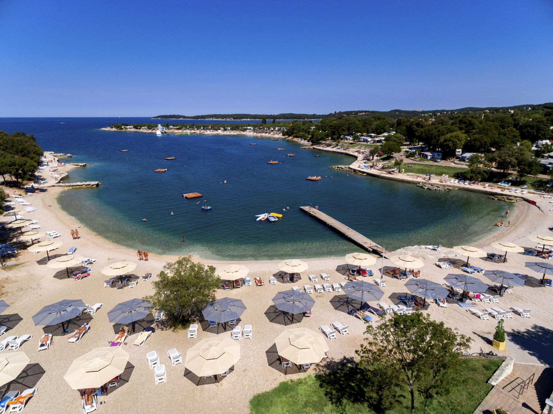 The beauty of this campsite is its variety of pebble, sandy, rocky and paved beaches, ideal for sunbathing and enjoying the sea, which is known to be of excellent quality. You can also enjoy a Finnish sauna, a Turkish steam bath, or a free morning Yoga class. Numerous activities and top-notch amenities make Valalta one of our favorite campsites for naturists in Croatia. FKK Naturist Valalta is surely one of the campsites to put on your FKK camping Croatia map.