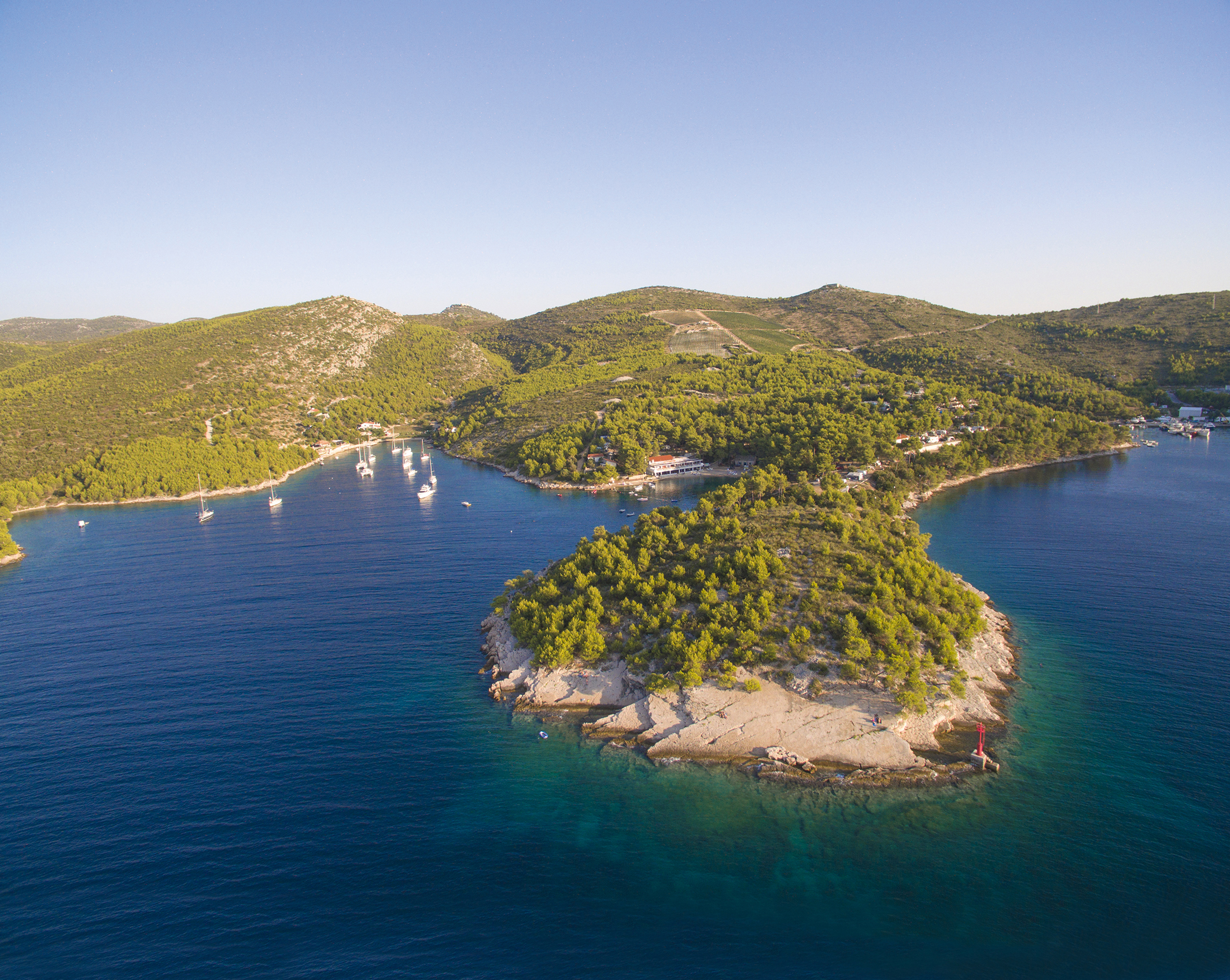Where to stay on Čiovo island? For an unspoiled nature experience, pick Camp Labadusa, settled in a picturesque bay of pebble and rocky beaches. This campsite offers pitches and mobile homes to enjoy nature. An excellent restaurant offers local dishes you can complement with excellent Dalmatian wines and olive oil.