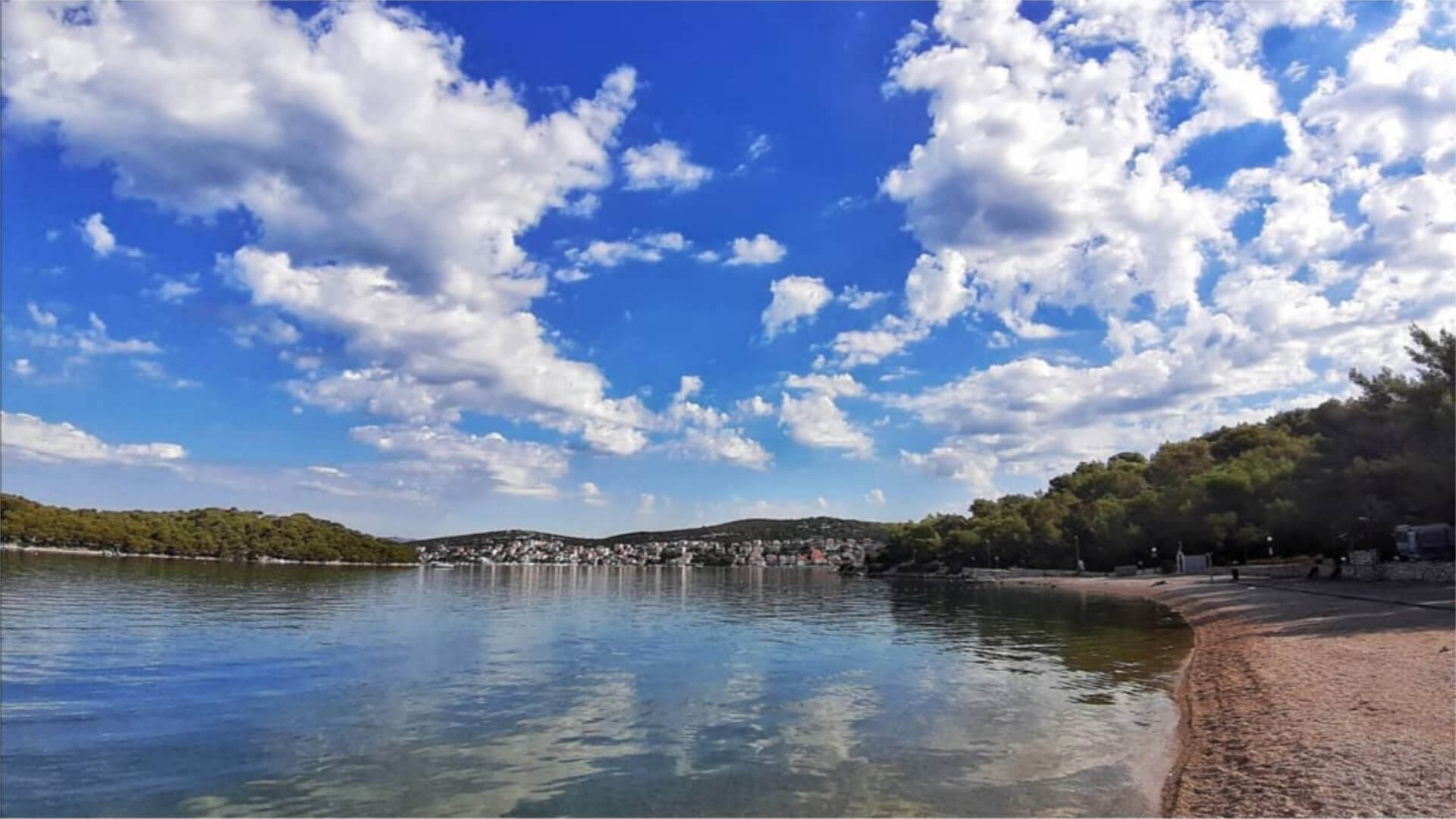 • long pebble beach, shallow water, ideal for young children