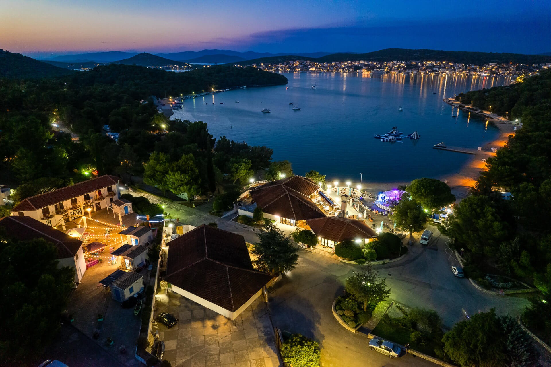 Camping Jezera Lovišća is situated near the fishermans village Jezera on the island of Murter, which being only a few meters far from the land, is connected with it by bridge, surrounded on one side by the pebbly beach and on the other by the dense forest.